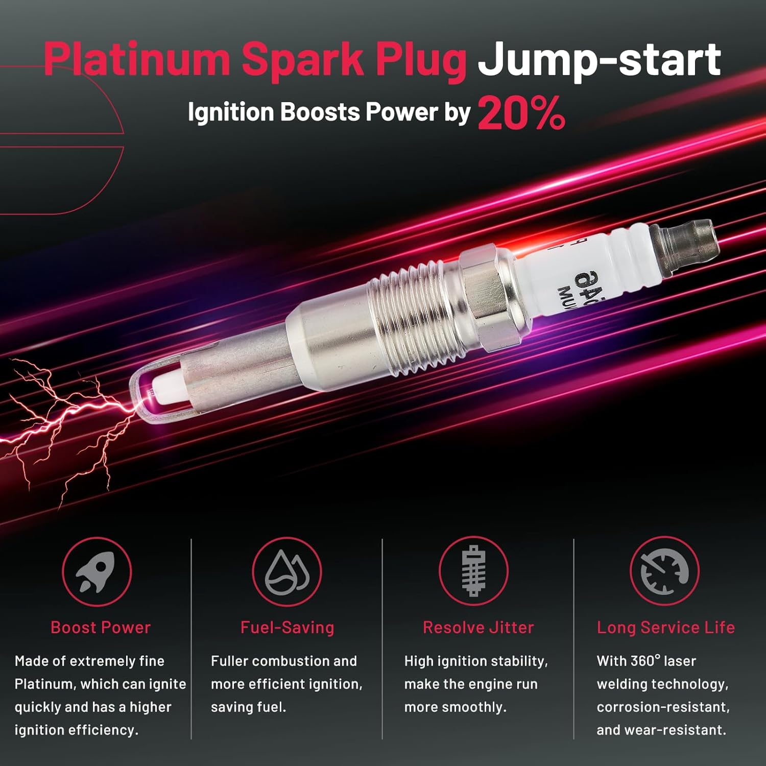 【Features of spark plug:】Professional spark plugs is made of high-tech materials. We choose iridium electrode and unique ceramic to make sure your car can have a new life after being installed. The car will start quickly and speed up in a short time as powerful as a new car. ‼Please check OE:SP546, SP515, SP507.