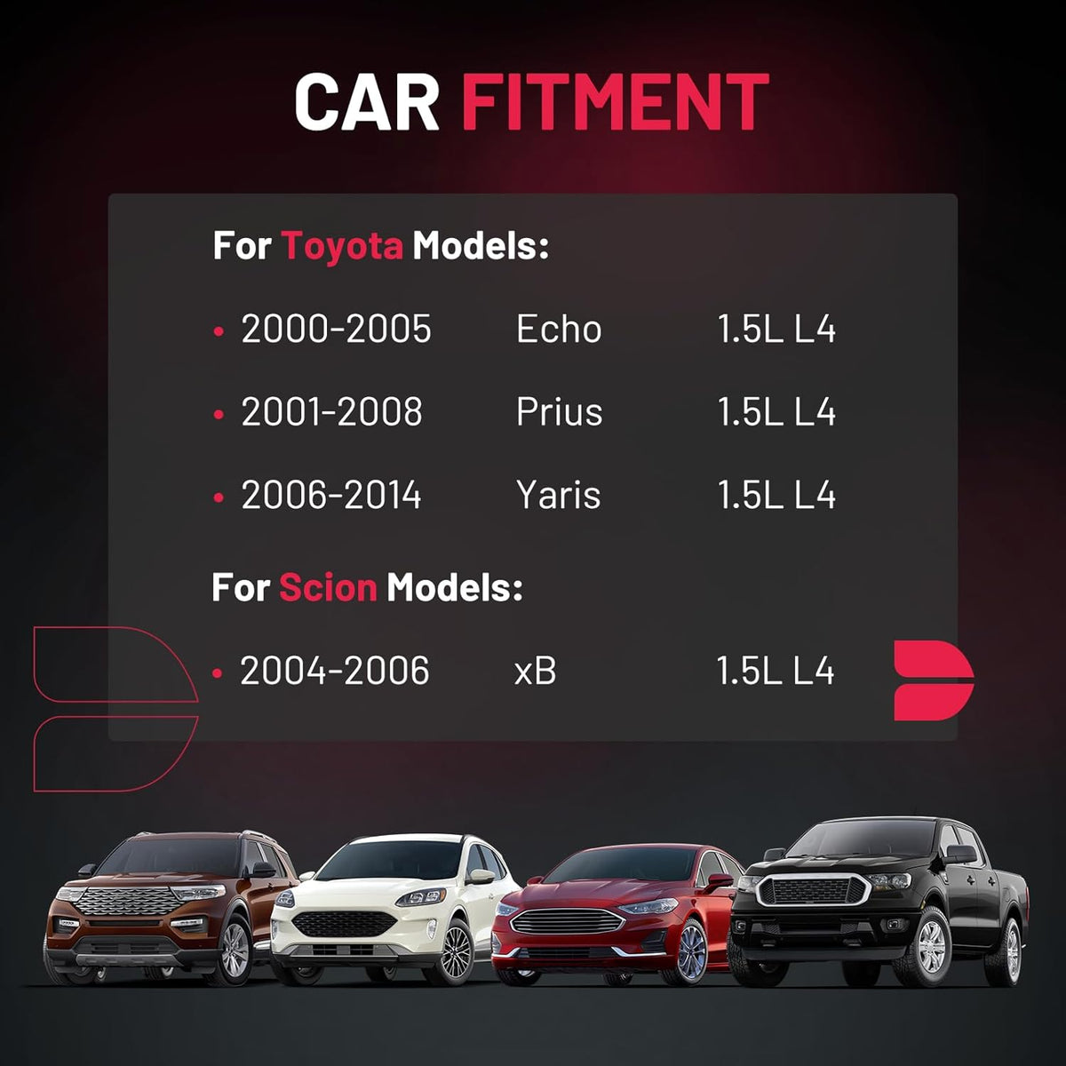 【Basic Info:】Ignition Coil C1304 & Spark Plug 7090, Compatible with Scion 2004-2006 xB, Compatible with Toyota 2000-2005 Echo, 2001-2009 Prius, 2006-2014 Yaris. Please check detail fitting info from pics or detail page. OE checking is necessary before buying. 12 months warranty and lifetime after-sales service are furnished after buying our products. Please choose a suitable one with confidence.