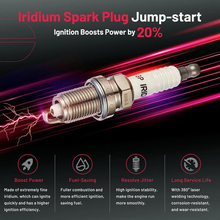 【Features of spark plug:】Professional spark plus is made of high-tech materials. We choose iridium electrode and unique ceramic to make sure your car can have a new life after being installed. The car will start quickly and speed up in a short time as powerful as a new car. ‼Please check OE:BKR5EGP,7090.