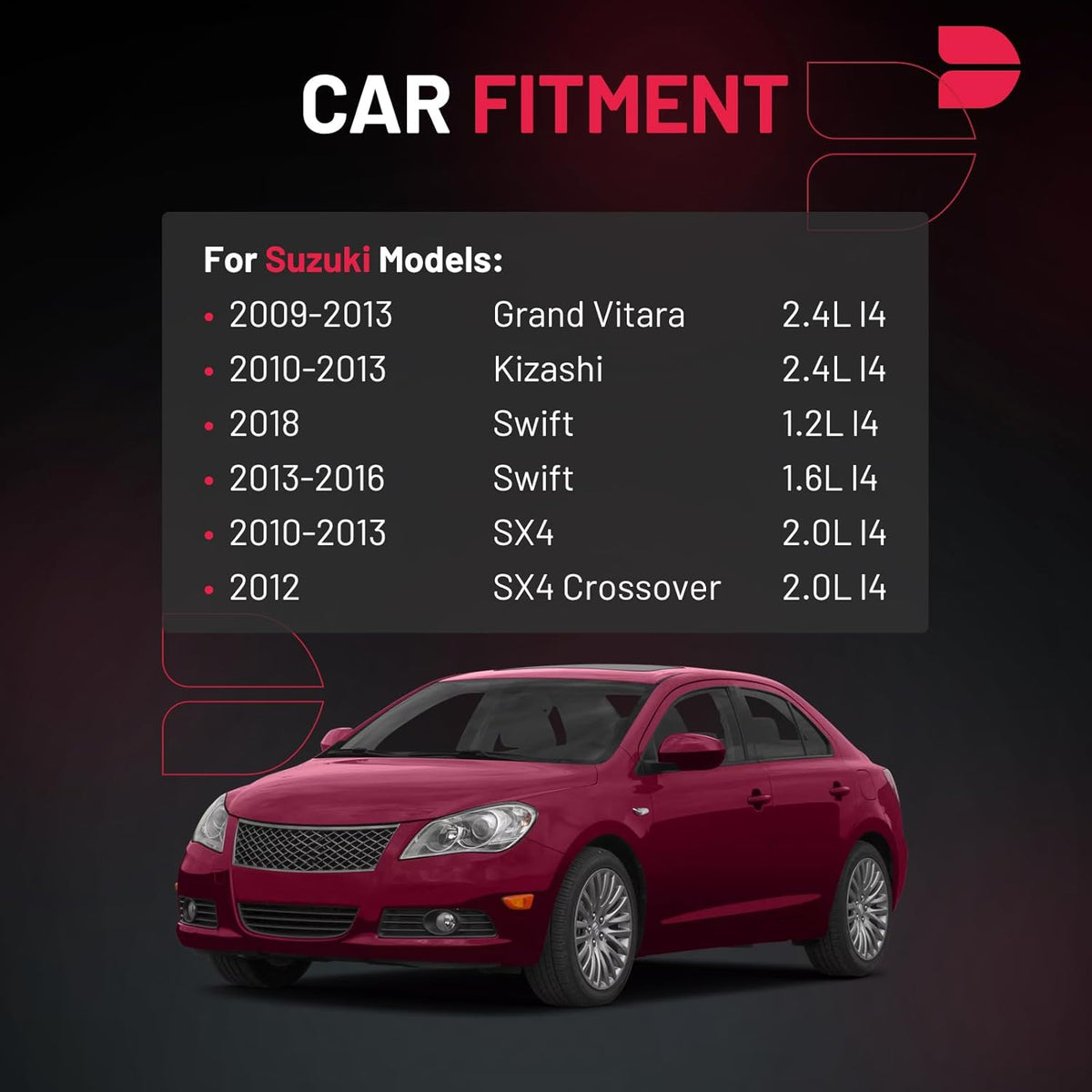 【Precautions for Purchase】:Compatible with Suzuki 2013-2016 2018 Swift, 2009-2013 Grand Vitara, 2010-2013 Kizashi, 2010-2013 SX4, 2012 SX4 Crossover.Please confirm the compatibility according to the year/make/model of your vehicle and the OE number of the replaceable part.