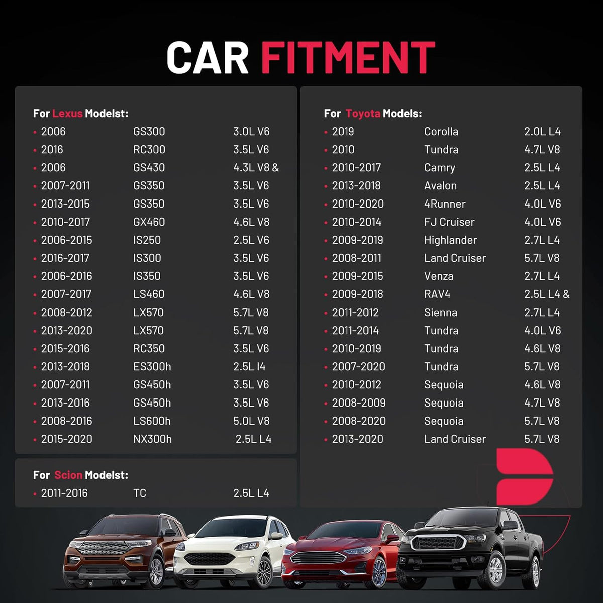 【Precautions for Purchase】:Ignition Coils Compatible with Lexus ES300h GS300 GS350 GS430 GS450h GX460 IS250 IS300 IS350 LS460 LS600h LX570 NX300h RC300 RC350, Compatible with Scion tC, Compatible with Toyota 4Runner Avalon Camry Corolla FJ Cruiser Highlander Land Cruiser RAV4 Sequoia Sienna Tundra Venza. Please confirm the compatibility according to the year/make/model of your vehicle and the OE number of the replaceable part.