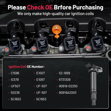 【Compatible Part Numbers】:Coil packs compatible to C1596, 6731309, UF507, 50236, 5C1653, UF-507, UF-587, 5C1653, E1007, E1087, 52-1889, IC587, 90919-02250, 90919A2003.