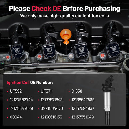 【Compatible Part Numbers】:Coil packs compatible to UF592 UF571 C1638 00044 0221504470 12137594937 12137562744 12137571643 12138647689 12138616153 12137551049 12138647689.