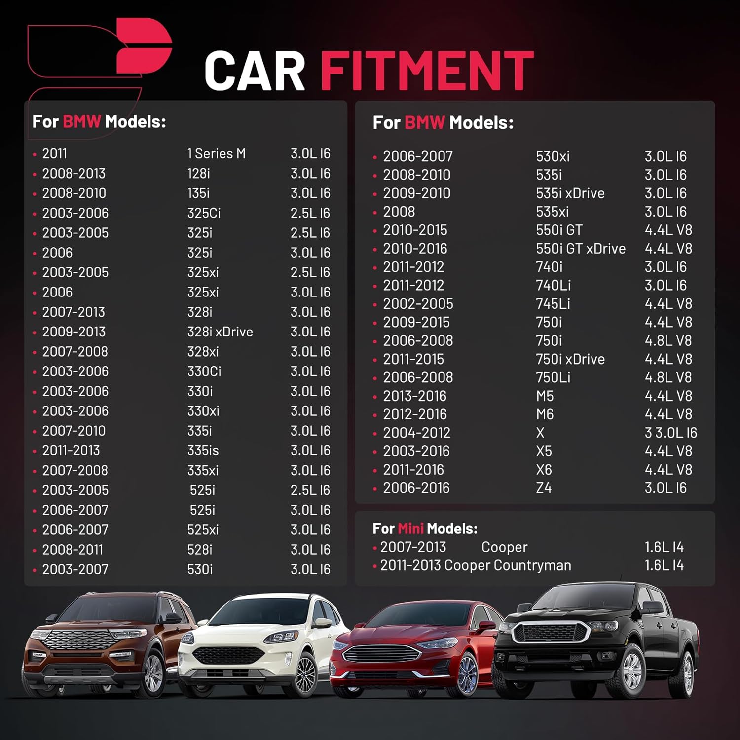 【Precautions for Purchase】:Compatible with BMW 1 Series M 128i 135i 325Ci 325i 325xi 328i 328i xDrive 328xi 330Ci 330i 330xi 335i 335is 335xi 525i 525xi 528i 530i 530xi 535i 535i xDrive 535xi 550i GT 550i GT xDrive 740i 740Li 745Li 750i 750i xDrive 750Li M5 M6 X3 X5 X6 Z4, Compatible with Mini Cooper Cooper Countryman .Please confirm the compatibility according to the year/make/model of your vehicle and the OE number of the replaceable part.