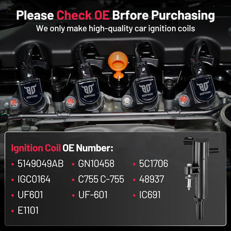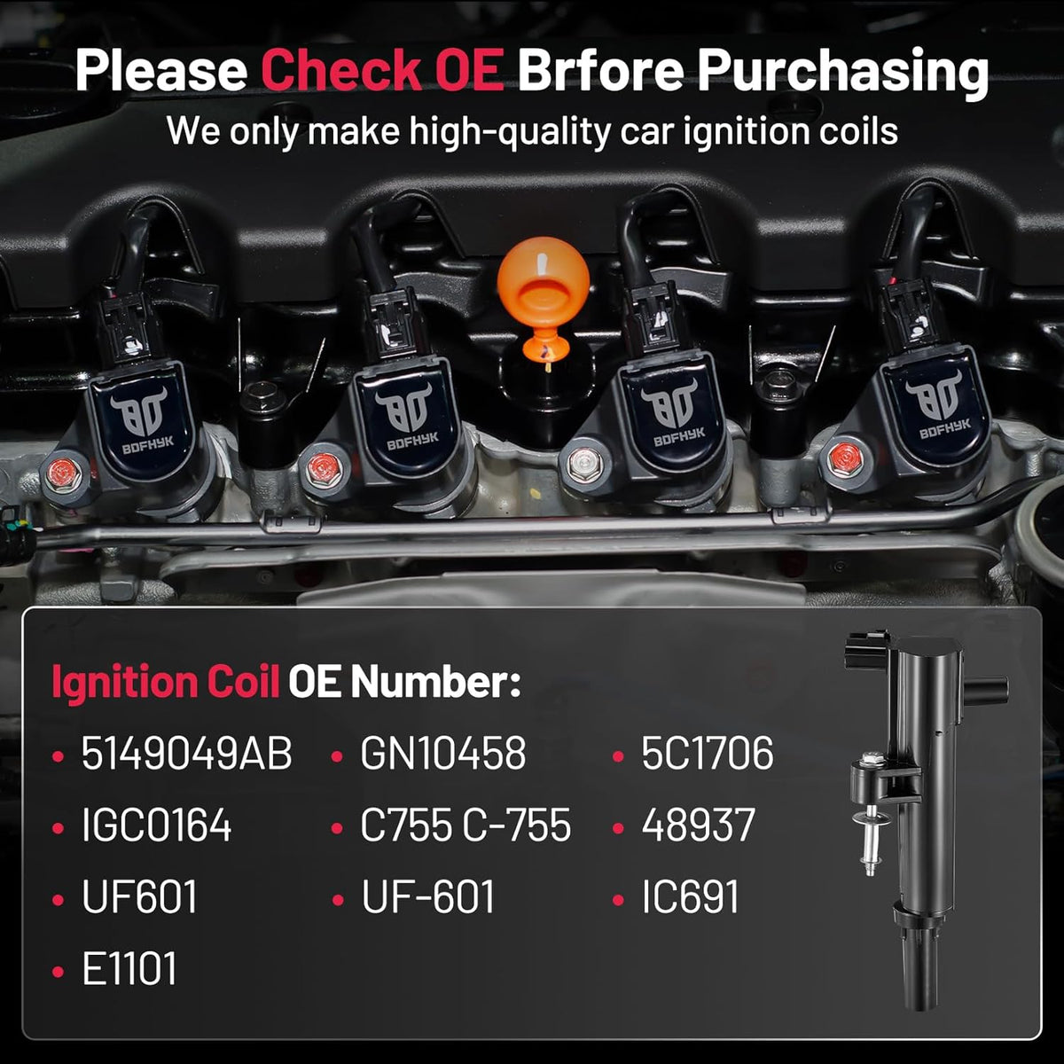 【Compatible Part Numbers】:Coil packs compatible to 5149049AB GN10458 5C1706 IGC0164 C755 C-755 48937 UF601 UF-601 IC691 E1101.