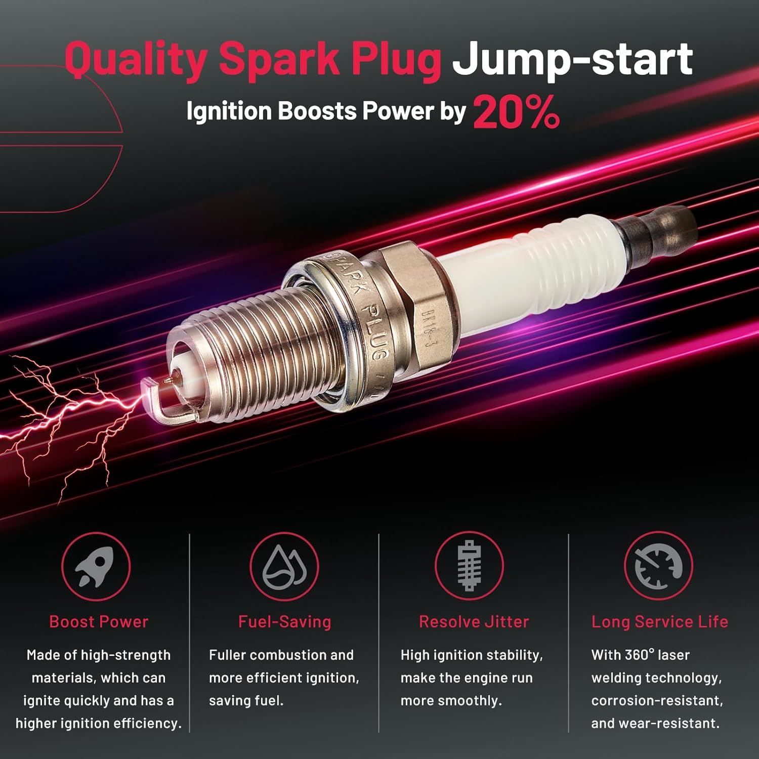 【Features of spark plug:】Professional spark plugs is made of high-tech materials. We choose iridium electrode and unique ceramic to make sure your car can have a new life after being installed. The car will start quickly and speed up in a short time as powerful as a new car. ‼Please check OE:4503.