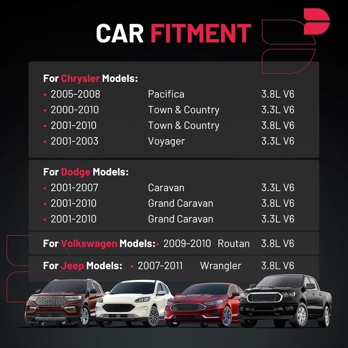 【Precautions for Purchase】Compatible with Jeep 2007-2011 Wrangler; Compatible with Chrysler 2001-2010 Town & Country,2005-2008 Pacifica,2001-2008 Voyager,2001-2002 Grand Voyager; Compatible with Dodge 2001-2010 Grand Caravan,2001-2007 Caravan; Compatible with Volkswagen 2009-2010 Routan.Please confirm the compatibility according to the year/make/model of your vehicle and the OE number of the replaceable part.