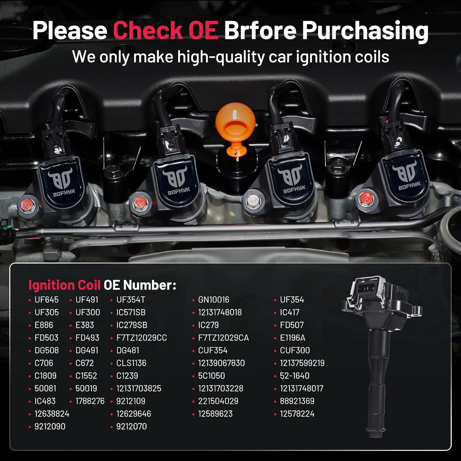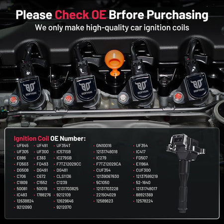 【Compatible Part Numbers】:Coil packs compatible to UF354 245279 12131703227 12137599218 0221504004 0221504029