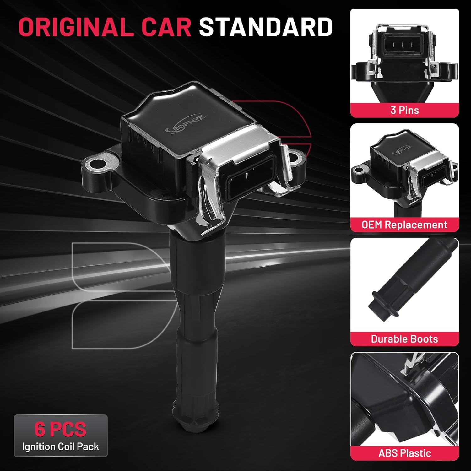 【Coils Features】:OE Standard Performance & Durability TS16949 Certified Manufacturer.Made of high grade materials such as Germany imported PBT and U.S. domestic PPO to enhance the heat resistant, Abrasion resistant, Corrosion resistant and prolong life of the coil. Strict quality control and extreme conditions are tested to ensure that the coil can output high voltage stably.
