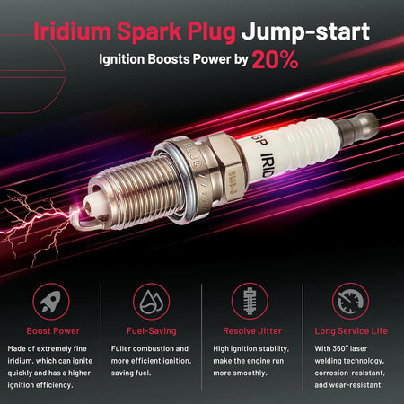 【Features of spark plug:】Professional spark plus is made of high-tech materials. We choose iridium electrode and unique ceramic to make sure your car can have a new life after being installed. The car will start quickly and speed up in a short time as powerful as a new car. ‼Please check OE:ZFR6FGP.
