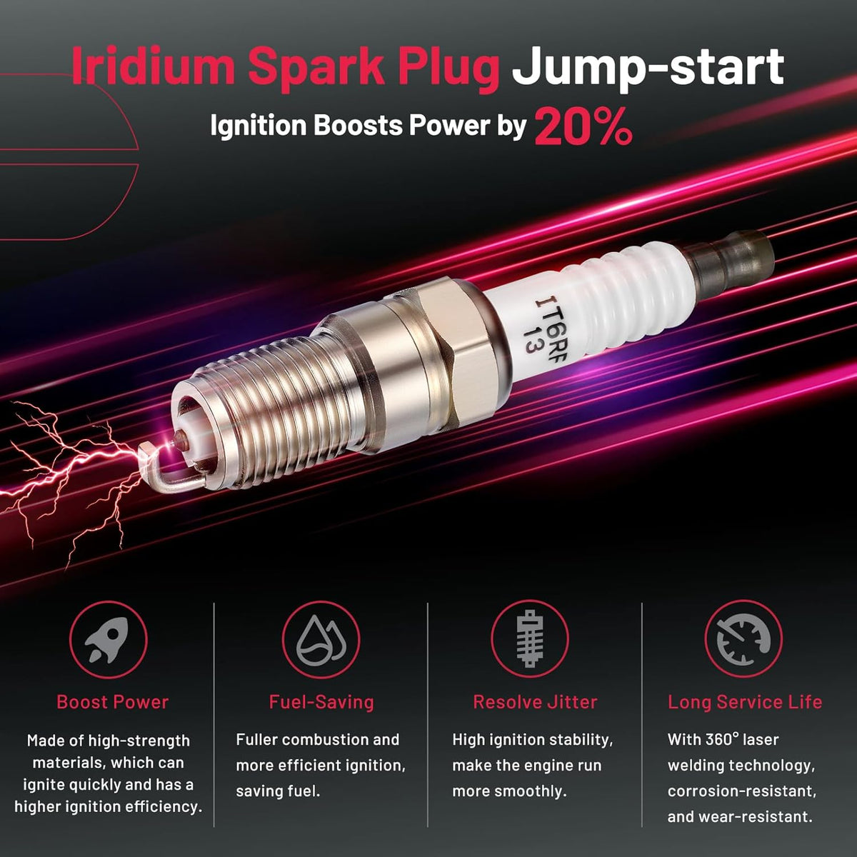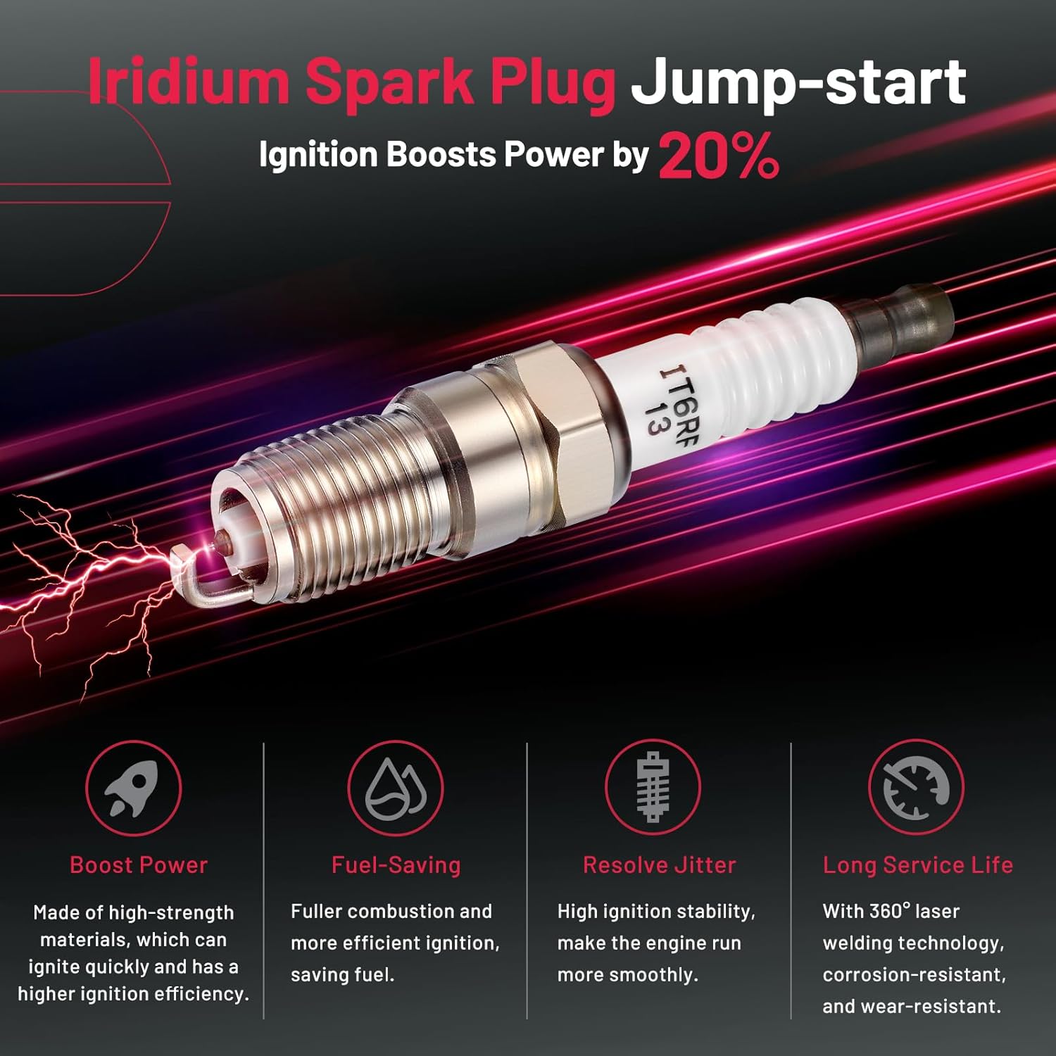 【Features of spark plug:】Professional spark plus is made of high-tech materials. We choose iridium electrode and unique ceramic to make sure your car can have a new life after being installed. The car will start quickly and speed up in a short time as powerful as a new car. ‼Please check OE: SP1004 SP479.