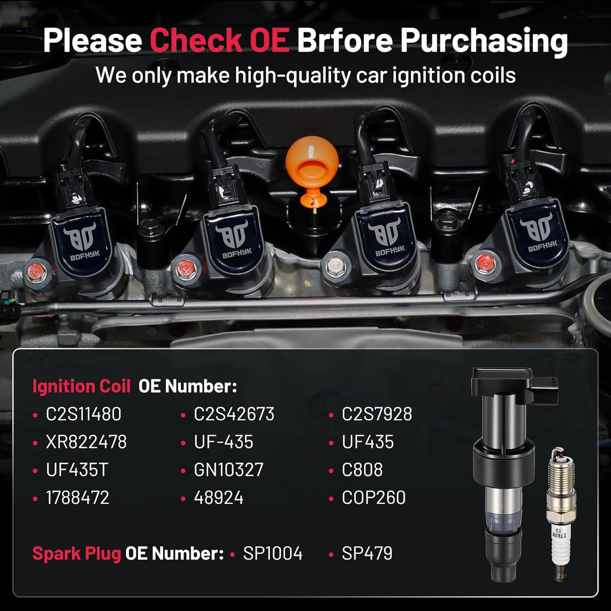 【Yes, you need a new one!】If your car has been used for a long time(over 80000km) and has problems like car shaking, start-up failure, speeding up slowly, and increasing fuel consumption, you may need to change a new set of spark plugs and coil packs. BDFHYK ignition coil and spark plug can offer you a professional user experience and make your car like new. You may choose it with confidence.