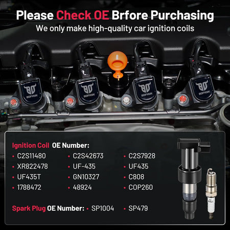 【Features of ignition coil:】High quality ignition coils are made of silicon steel material, Japan-imported rubber, and Germany-imported varnished wire, which makes our products have a long using life and better quality. ‼Please check OE:C2S11480 C2S42673 C2S7928 XR822478 UF-435 UF435 UF435T GN10327 C808 1788472 48924 COP260.