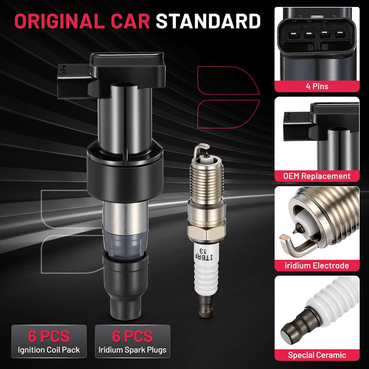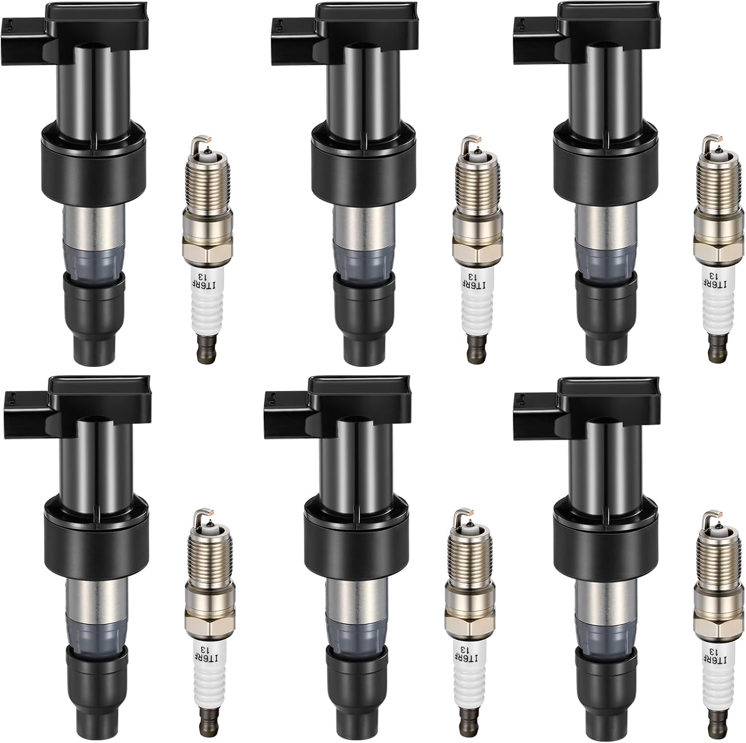 BDFHYK Ignition Coil Pack UF435 and Iridium Spark Plugs SP479 Compatible with Jaguar 2003-2008 S-Type 2001-2008 X-Type 2001-2005 X-Type 2.5L 3.0L V6 UF435T GN10327 C2S11480,Set of 6