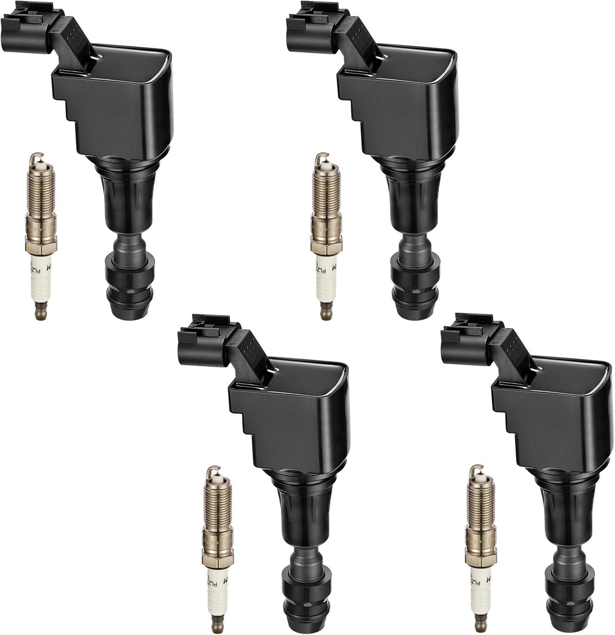 BDFHYK Ignition Coil Pack UF491 and Iridium Spark Plugs 12578224 Compatible with Buick Chevrolet GMC Pontiac Saab Saturn 2.0L 2.2L 2.4L L4, Sets of 4