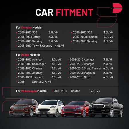 【Precautions for Purchase】Compatible with Dodge 2007-2011 Nitro,2008-2010 Avenger, 2009-2010 Challenger, 2006-2010 Charger, 2008-2010 Grand Caravan, 2009-2010 Journey, 2006-2008 Magnum; Compatible with Chrysler 2006-2010 300, 2006 Cirrus, 2007-2008 Cirrus, 2006-2010 Sebring, 2007-2010 Sebring, 2008-2010 Town & Country, 2007-2008 Pacifica; Compatible with Volkswagen 2009-2010 Routan.
