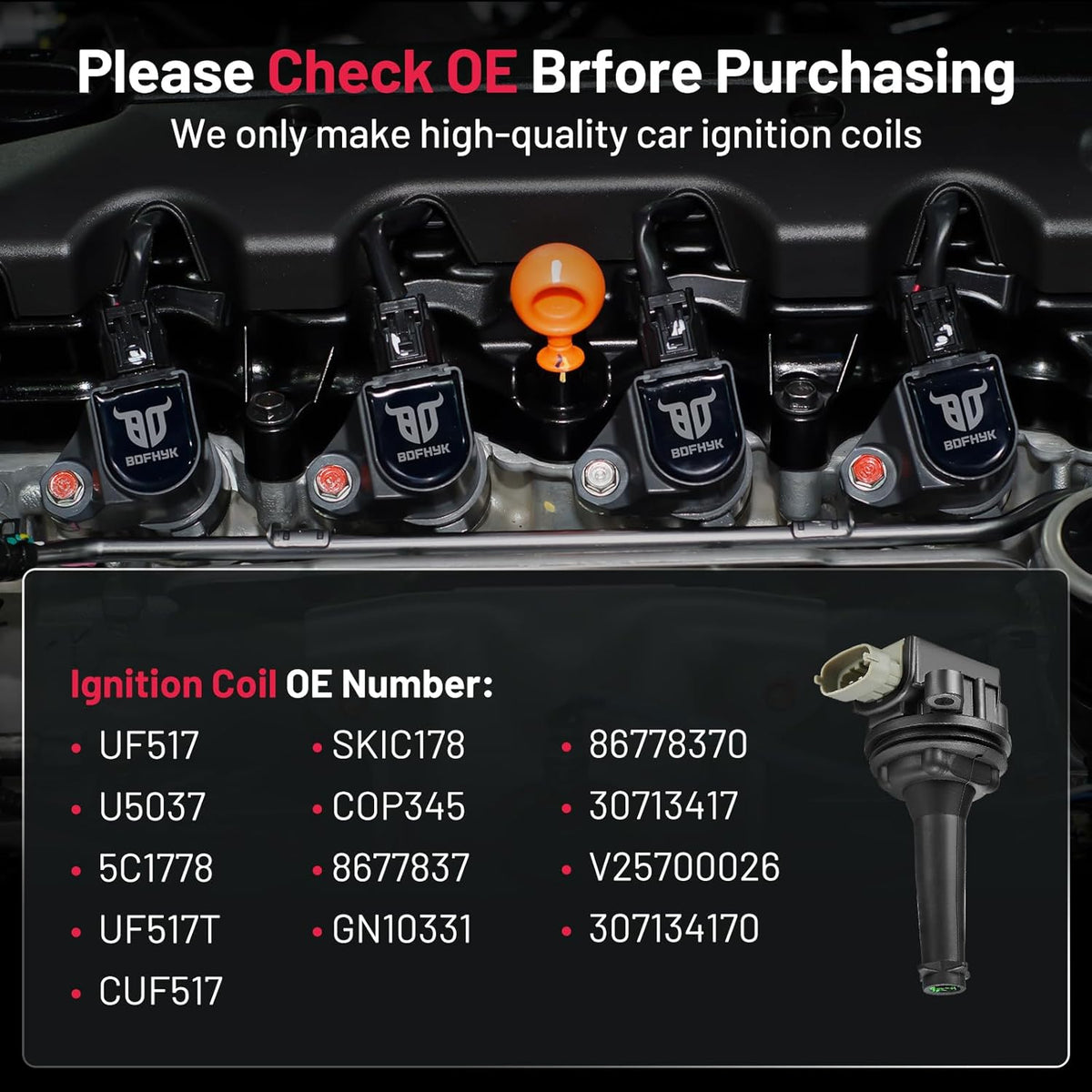 【Compatible Part Numbers】:Coil packs compatible to UF517 30713417 307134170 8677837 86778370 UF517T CUF517 5C1778 SKIC178 30713417 GN10331 COP345 U5037 V25700026.
