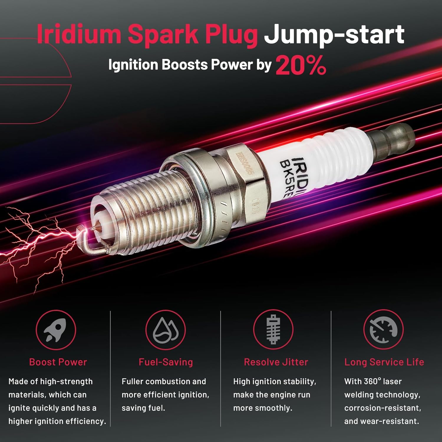 【Features of spark plug:】Professional spark plus is made of high-tech materials. We choose iridium electrode and unique ceramic to make sure your car can have a new life after being installed. The car will start quickly and speed up in a short time as powerful as a new car. ‼Please check OE: BKR5EGP 7090.