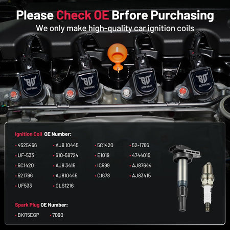 【Yes, you need a new one!】If your car has been used for a long time(over 80000km) and has problems like car shaking, start-up failure, speeding up slowly, and increasing fuel consumption, you may need to change a new set of spark plugs and coil packs. BDFHYK ignition coil and spark plug can offer you a professional user experience and make your car like new. You may choose it with confidence.
