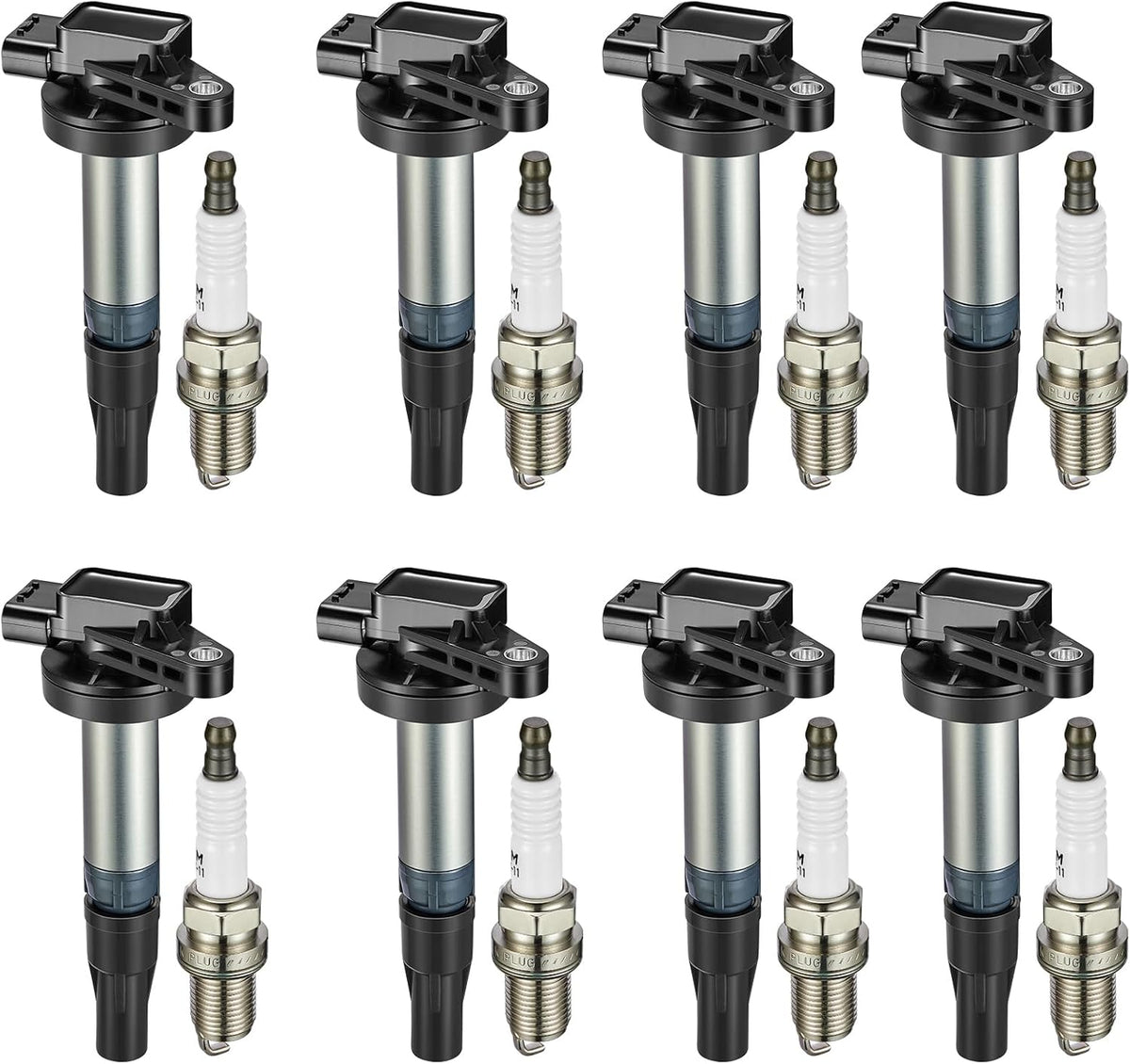 BDFHYK Ignition Coil Pack UF519 and Iridium Spark Plugs BKR5EGP Compatible with Land Rover LR3 Range Rover Jaguar XF XJ8 XK S-Type Super V8 XKR XJR 4.2L 4.4L V8 5C1420 E1019, Sets of 8