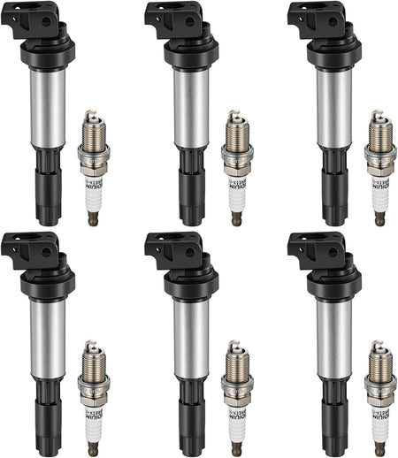 BDFHYK Ignition Coil Pack UF522 and Iridium Spark Plugs 7092 Compatible with BMW 320i 325Ci 325i 325xi 330Ci 330i 330xi 525i 530i 760i 760Li M3 X3 X5 Z3 Z4 2.2L 2.5L 3.0L 3.2L 6.0L L6 V12,Set of 6