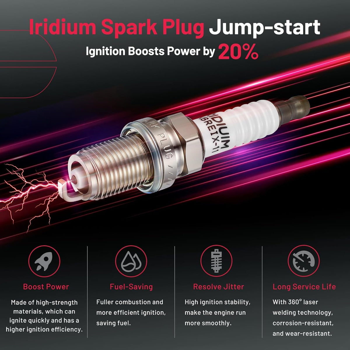 【Features of spark plug:】Professional spark plus is made of high-tech materials. We choose iridium electrode and unique ceramic to make sure your car can have a new life after being installed. The car will start quickly and speed up in a short time as powerful as a new car. ‼Please check OE: 7092 4504.