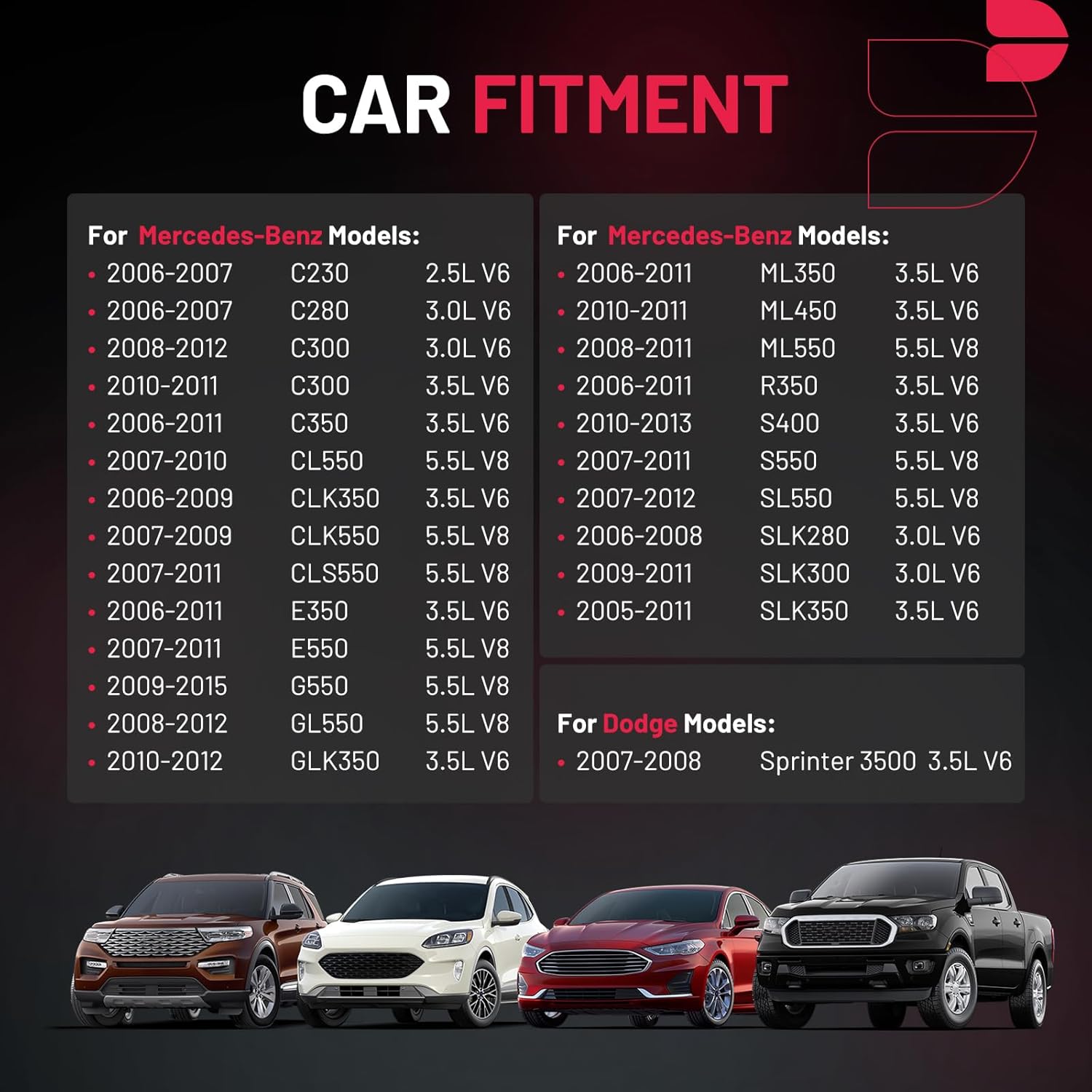 【Basic Info:】Ignition Coil UF535 & Spark Plug 95983 are Compatible with Mercedes-Benz 2006-2007 C230,2006-2007 C280,2008-2012 C300,2006-2011 C350,2007-2010 CL550,2007-2011 CLS550,2009-2015 G550,2008-2012 GL550,2005-2011 SLK350,Compatible with Dodge 2007-2008 Sprinter 3500. Please check detail fitting info from pics or detail page. OE checking is necessary before buying. Lifetime after sales service are furnished after bought our products. Please choose suitable one with confidence.