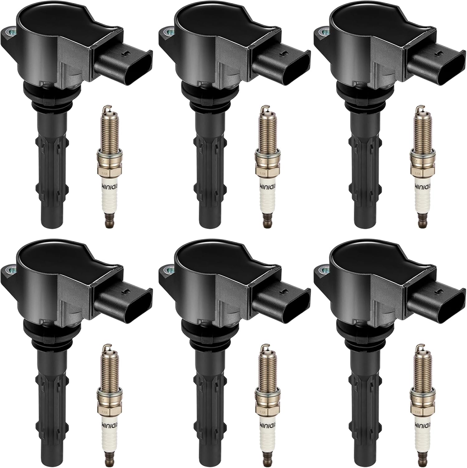 BDFHYK Ignition Coil Pack UF535 and Iridium Spark Plugs 95983 Compatible with Mercedes-Benz C230 C280 CLK350 E350 ML350 SLK280 Dodge Sprinter 3500 2.5L 3.0L 3.5L 5.5L V6, Sets of 6