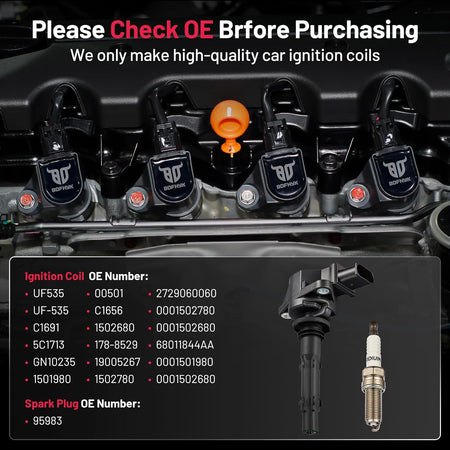 【Yes, you need a new one!】If your car has been used for a long time(over 80000km) and has problems like car shaking, start-up failure, speeding up slowly, and increasing fuel consumption, you may need to change a new set of spark plugs and coil packs. BDFHYK ignition coil and spark plug can offer you a professional user experience and make your car like new. You may choose it with confidence.