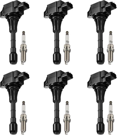 BDFHYK Ignition Coil Pack UF550 and Iridium Spark Plugs 1406 Compatible with Nissan Infiniti Maxima Murano Pathfinder Quest Altima Q50 QX60 FX35 2.5L 3.5L L4 V6 3.2L 3.6L V6, Sets of 6