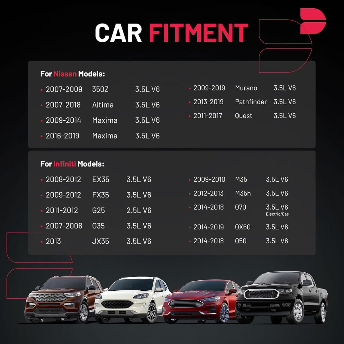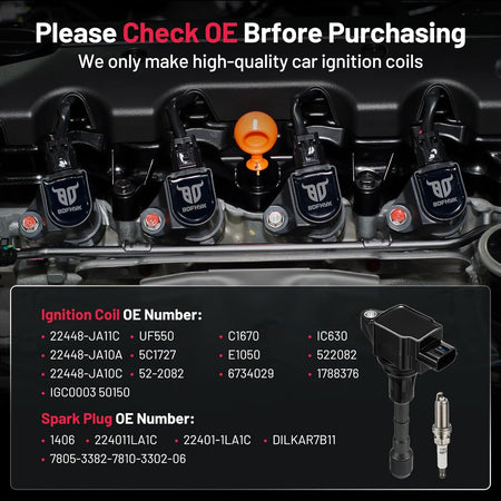 【Basic Info:】Ignition Coil UF550 & Spark Plug 1406 are compatible with Nissan 2007-2009 350Z,2007-2018 Altima,2009-2020 Maxima,2020 Murano,2013-2020 Pathfinder,2011-2017 Quest, Compatible with INFINITI 2013 JX35, 2014-2018 Q50 Q70,2014-2020 QX60,2011-2012 G25,2007-2008 G35. Please check detail fitting info from pics or detail page. OE checking is necessary before buying. Lifetime after sales service are furnished after bought our products. Please choose suitable one with confidence.