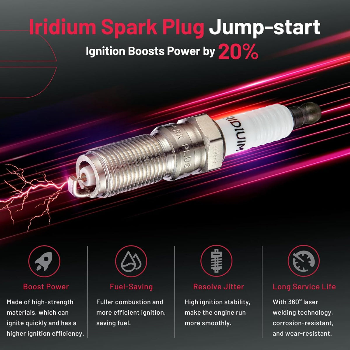 【Features of spark plug:】Professional spark plus is made of high-tech materials. We choose iridium electrode and unique ceramic to make sure your car can have a new life after being installed. The car will start quickly and speed up in a short time as powerful as a new car. ‼Please check OE:SP589 SP520 CYFS12F5 SP520X CYFS12F5X CYFS12YT6 CYFSO92FT, SP-551.