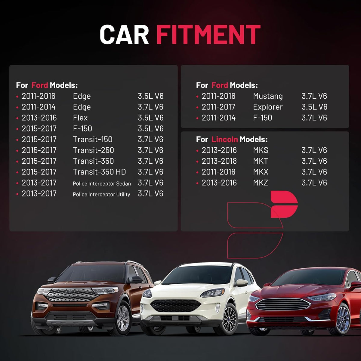 【Basic Info:】Ignition Coil UF553 & Spark Plug SP589 are compatible with Lincoln MKS MKT MKX MKZ. Please check detail fitting info from pics or detail page. OE checking is necessary before buying. Lifetime after sales service are furnished after bought our products. Please choose suitable one with confidence.