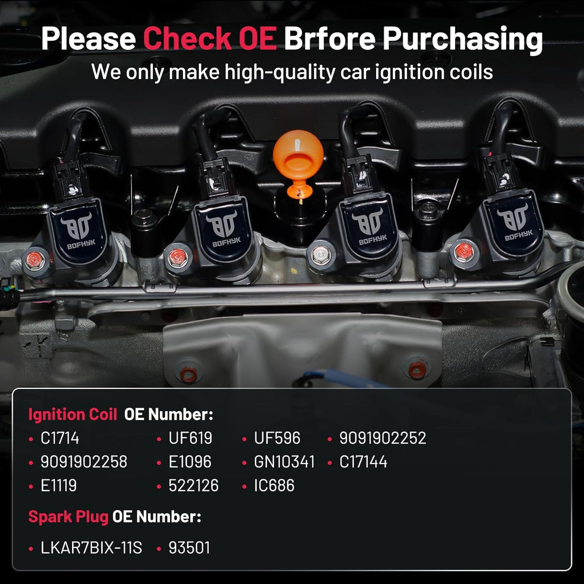【Yes, you need a new one!】If your car has been used for a long time(over 80000km) and has problems like car shaking, start-up failure, speeding up slowly, and increasing fuel consumption, you may need to change a new ignition coils and spark plugs set. BDFHYK coil packs and spark plugs can offer you a professional user experience and make your car like new. You may choose it with confidence.