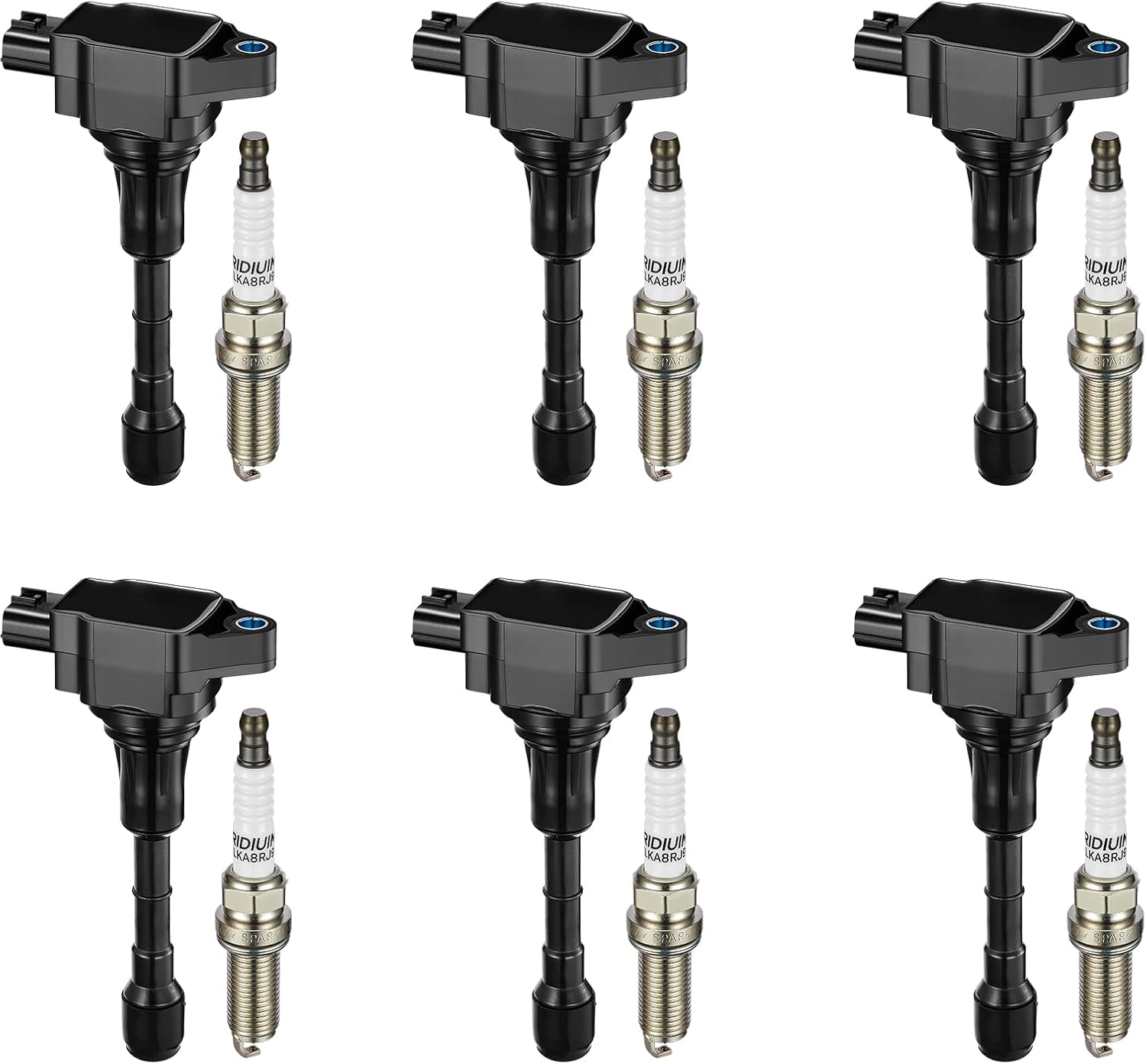 BDFHYK Ignition Coil Pack UF617 and Iridium Spark Plugs 90174 Compatible with Nissan 370Z INFINITI FX37 G37 M37 Q40 Q50 Q60 Q70 QX70 370Z 3.7L 5.6L V6 V8 22448EY00A, Sets of 6