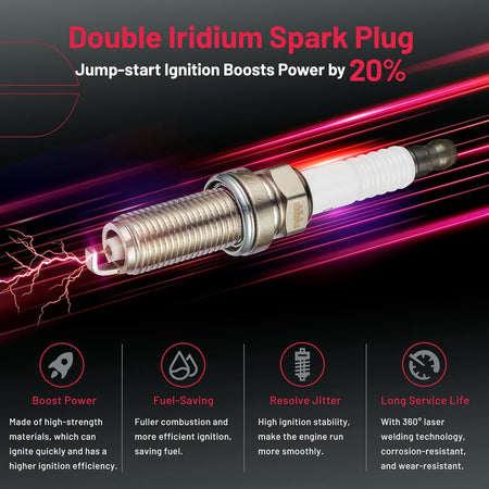 【Features of spark plug:】Professional spark plus is made of high-tech materials. We choose iridium electrode and unique ceramic to make sure your car can have a new life after being installed. The car will start quickly and speed up in a short time as powerful as a new car. Please check OE: 90174 DF8H-11B.
