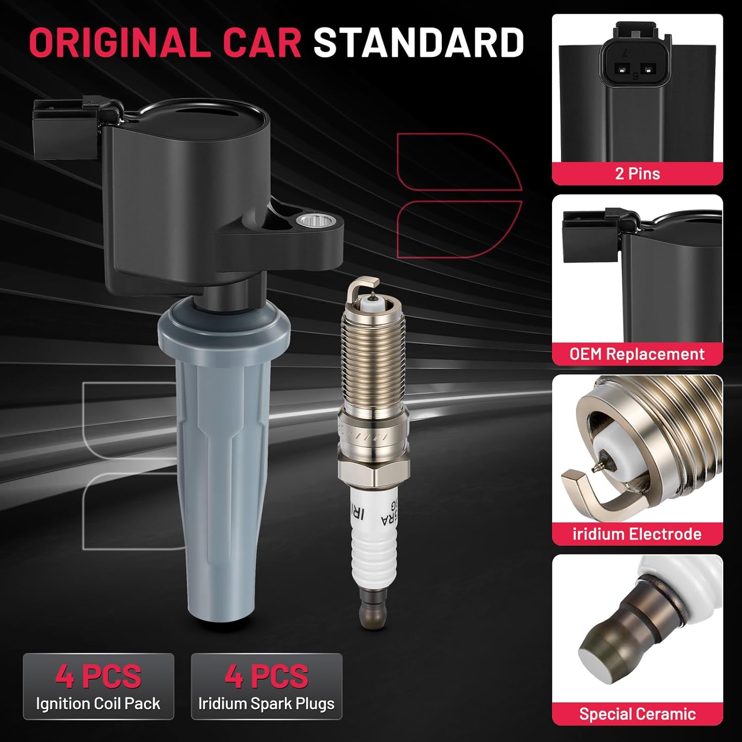 BDFHYK Ignition Coil Pack UF621 and Iridium Spark Plugs 5019 Compatible with Lincoln MKZ, Mariner Milan, Fusion Transit Connect Escape C-Max,Compatible with Mazda Tribute 2.0L 2.5L L4 DG522,Set of 4