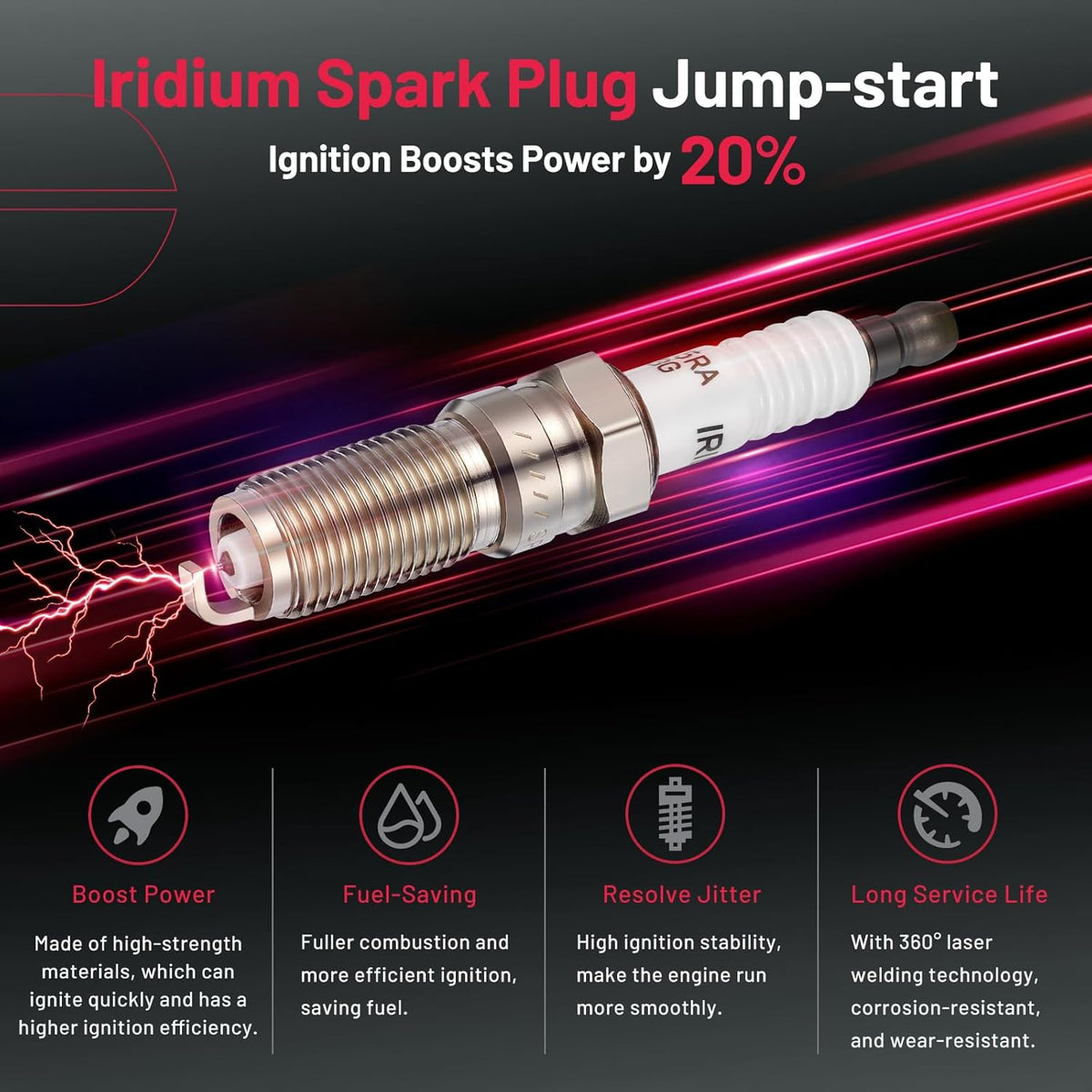 【Features of spark plug:】Professional spark plus is made of high-tech materials. We choose iridium electrode and unique ceramic to make sure your car can have a new life after being installed. The car will start quickly and speed up in a short time as powerful as a new car. ‼Please check OE: 5019 LTR5GP