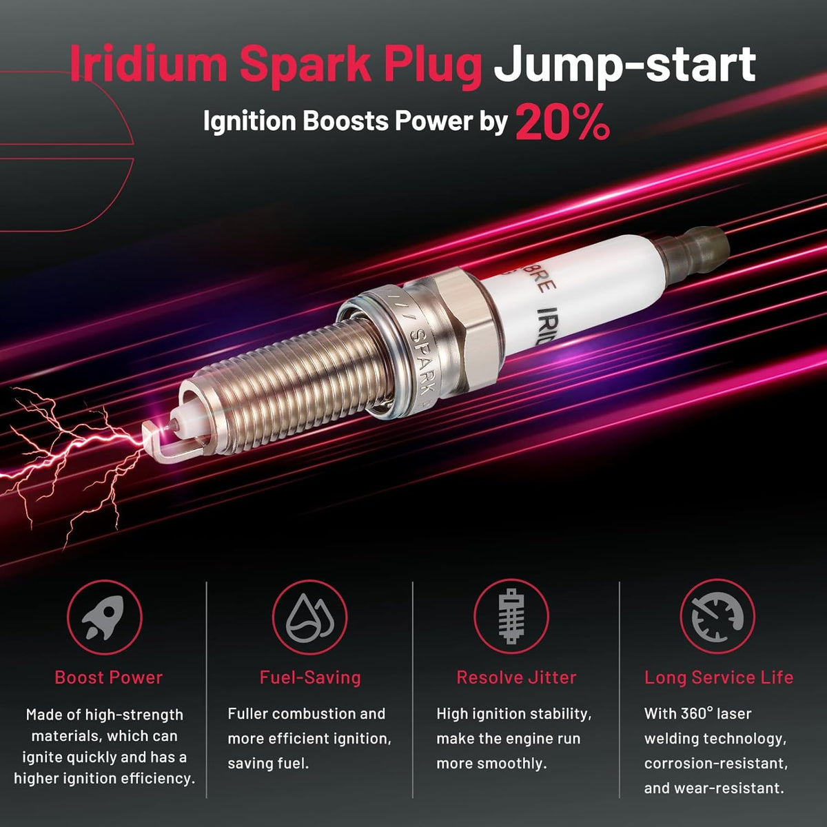 【Features of spark plug:】Professional spark plus is made of high-tech materials. We choose iridium electrode and unique ceramic to make sure your car can have a new life after being installed. The car will start quickly and speed up in a short time as powerful as a new car. ‼Please check OE: 92422 SILZKR8E9G.