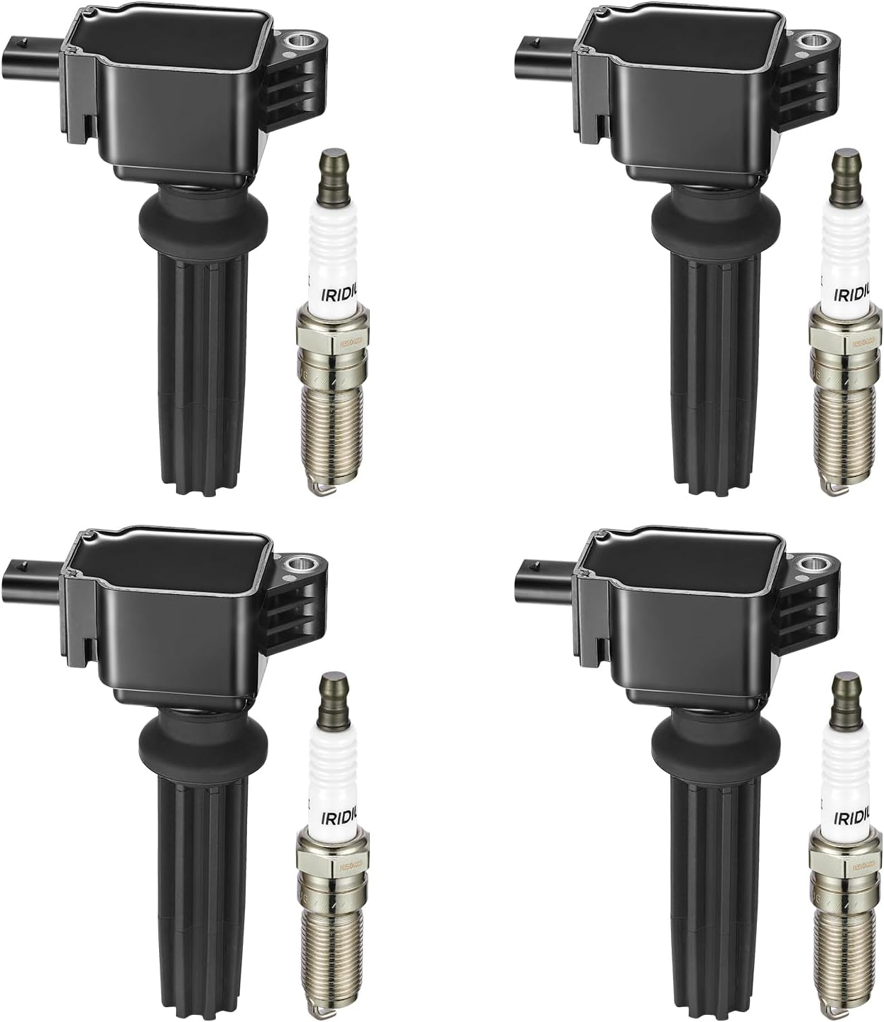 BDFHYK Ignition Coil Pack UF670 and Iridium Spark Plugs LTR6BHX Compatible with Lincoln MKC MKT MKZ Edge Escape Explorer Focus Fusion Mustang, Jaguar XE XF Land Rover LR2 2.0L 2.3L L4 EV,Sets of 4