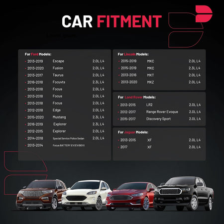 【Basic Info:】Ignition Coil UF670 & Spark Plug LTR6BHX are compatible with Lincoln MKC MKT MKZ, Edge Escape Explorer Focus Fusion Mustang,Jaguar XE XF,Land Rover LR2. Please check detail fitting info from pics or detail page. OE checking is necessary before buying. 12 months warranty and lifetime after sales service are furnished after bought our products. Please choose suitable one with confidence.