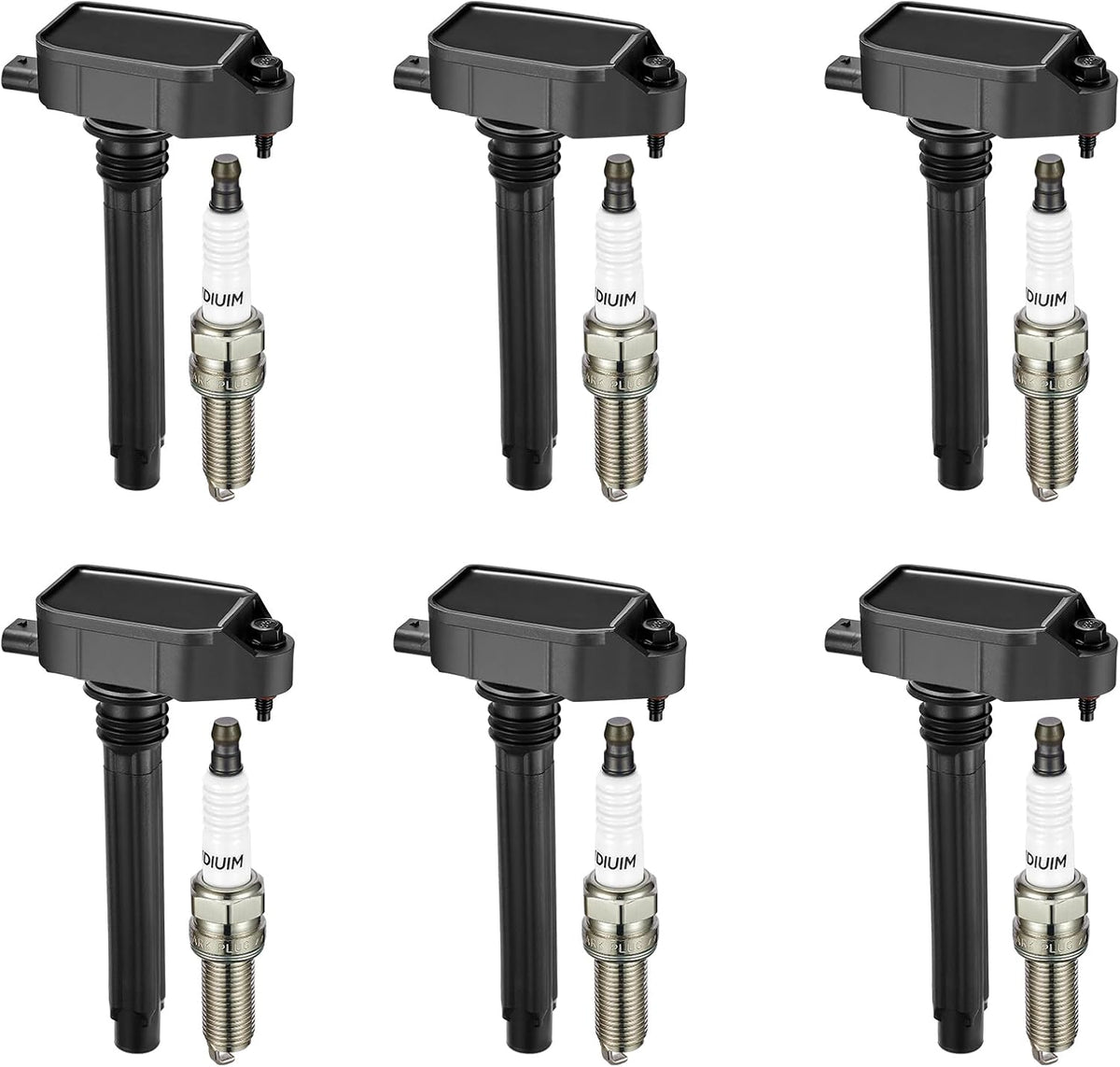 BDFHYK Ignition Coil Pack UF807 and Iridium Spark Plugs 93175 Compatible with Chrysler Pacifica Dodge Durango Jeep Grand Cherokee Wrangler Ram 1500 3.6L V6 68223569AB LKR7DIX-11S, Sets of 6