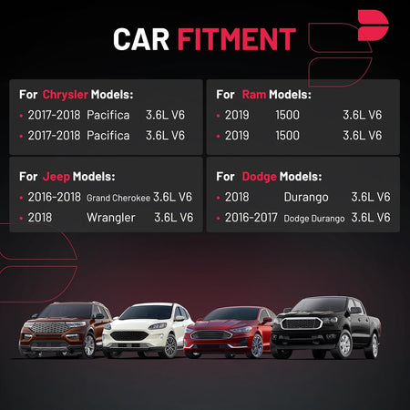 【Basic Info:】Ignition Coil UF807 & Spark Plug 93175 are compatible with Chrysler Pacifica, Compatible with Dodge Durango, Compatible with Jeep Grand Cherokee Wrangler Ram 1500. Please check detail fitting info from pics or detail page. OE checking is necessary before buying. 12 months warranty and lifetime after sales service are furnished after bought our products. Please choose suitable one with confidence.