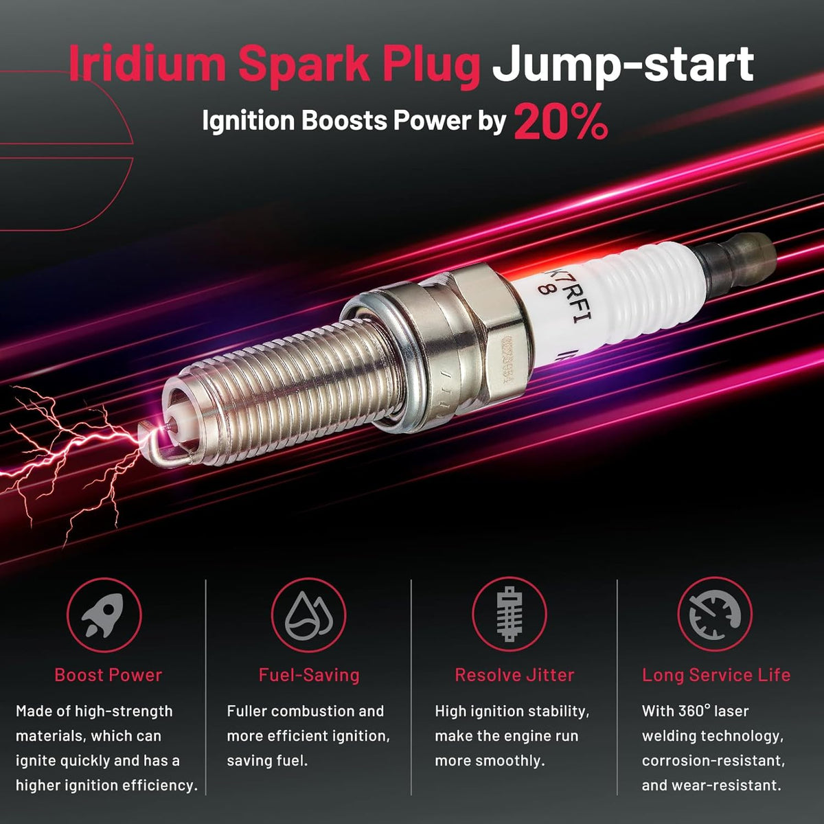 【Features of spark plug:】Professional spark plus is made of high-tech materials. We choose iridium electrode and unique ceramic to make sure your car can have a new life after being installed. The car will start quickly and speed up in a short time as powerful as a new car. ‼Please check OE: 93175 LKR7DIX-11S.