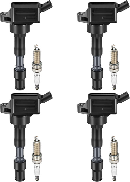 BDFHYK Ignition Coil Pack UF816 and Iridium Spark Plugs ILZKR8C8G Compatible with Hyundai 2017-2020 Elantra 2018-2020 Kona 2019-2020 Veloster,2018-2020 Kia Forte 2020 Soul 2.0L L4 273002E601,Set of 4