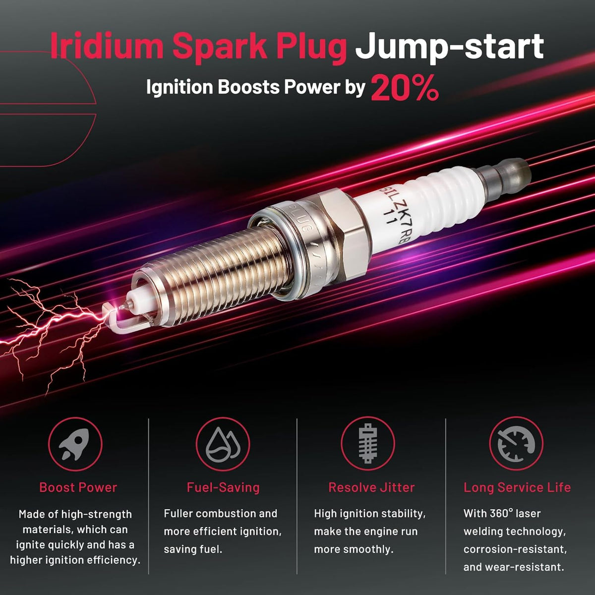 【Features of spark plug:】Professional spark plus is made of high-tech materials. We choose iridium electrode and unique ceramic to make sure your car can have a new life after being installed. The car will start quickly and speed up in a short time as powerful as a new car. ‼Please check OE: ILZKR8C8G.