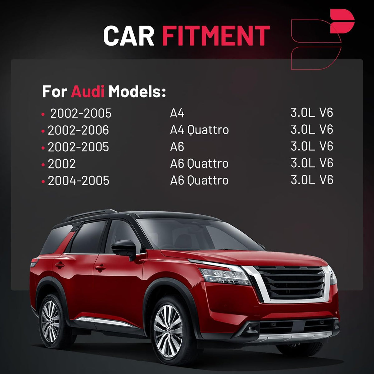 【Compatible with】Please confirm compatibility based on your vehicle's year, brand, model, and the OE number of the replacement coils.Ignition coils Compatible with Audi 2002-2005 A4, 2002-2006 A4 Quattro, 2002-2005 A6, 2002 A6 Quattro, 2004-2005 A6 Quattro. More information can be found in the pictures or on the details page.