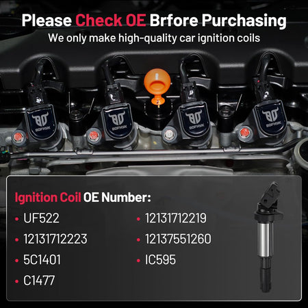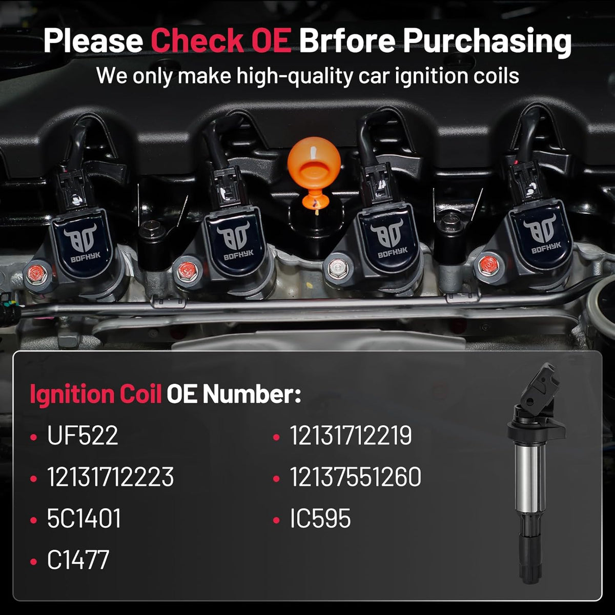 【OE Standard Performance】Exquisite craftsmanship design, 100% brand new high quality ignition coil pack, OE grade durability, bring you ultimate comfortable driving experience.OE No. UF522 12131712219 12131712223 12137551260 5C1401 IC595 C1477.