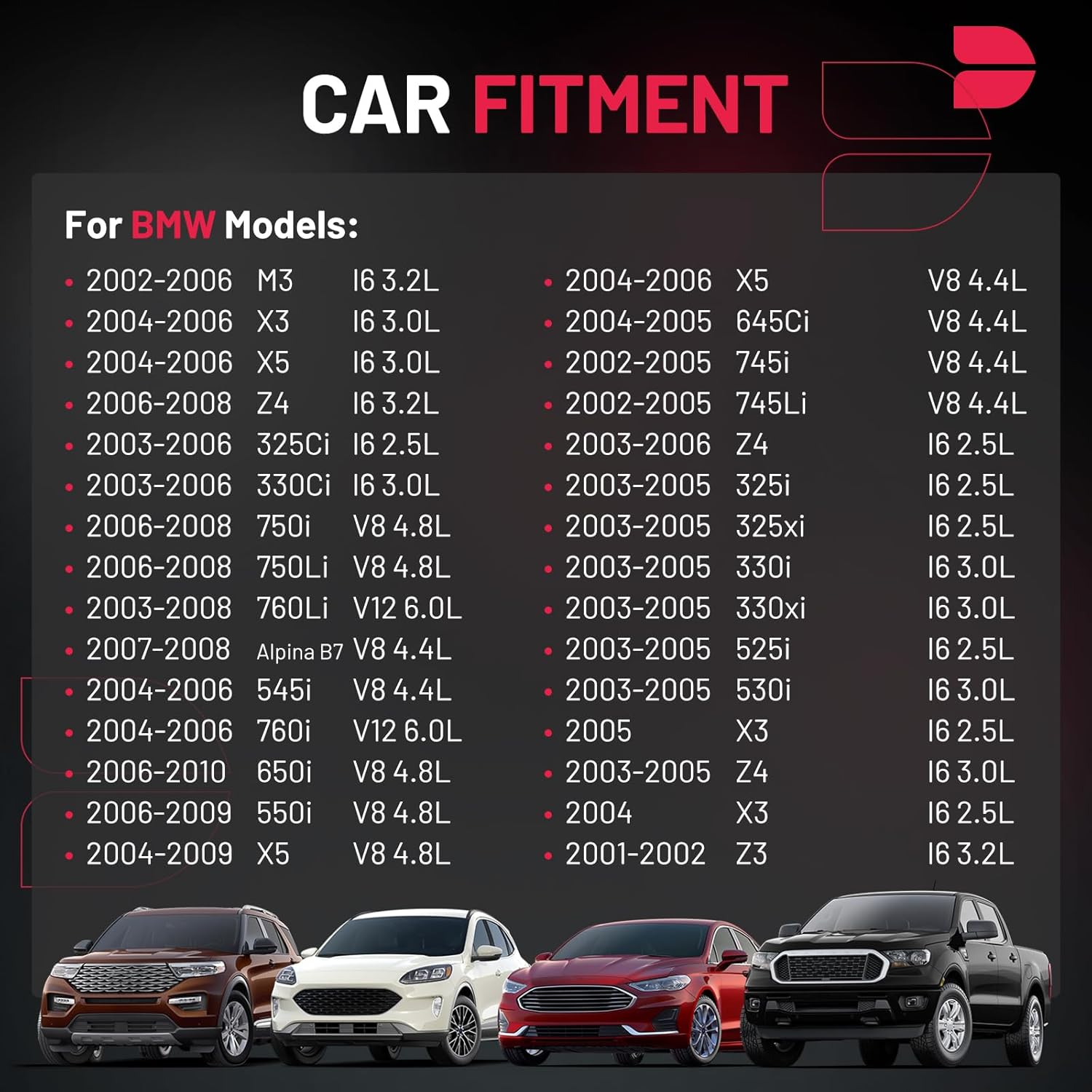 【Compatible with】Please confirm compatibility based on your vehicle's year, brand, model, and the OE number of the replacement coils.Ignition coils Compatible with BMW 2003-2005 325i 325xi 330i 330xi 525i 530i Z4; 2003-2006 325Ci 330Ci 760Li; 2004-2006 645Ci 545i 760i X3 X5; 2002-2006 M3; 2007-2008 Alpina B7; 2002-2005 745i 745Li. More information can be found in the pictures or on the details page.