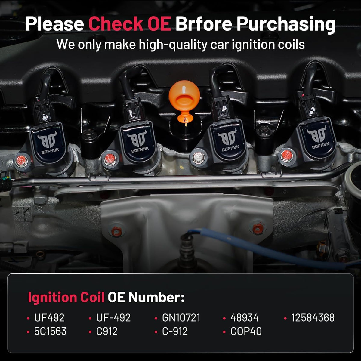 BDFHYK Ignition Coil Packs Compatible with Chevy 2005-2007 Cobalt, Compatible with Saturn 2004-2007 Ion 2.0L l4, Coil for 12584368 UF492 UF-492 GN10721 5C1563 C912 C-912 COP40 48934 12584368 Set of 4